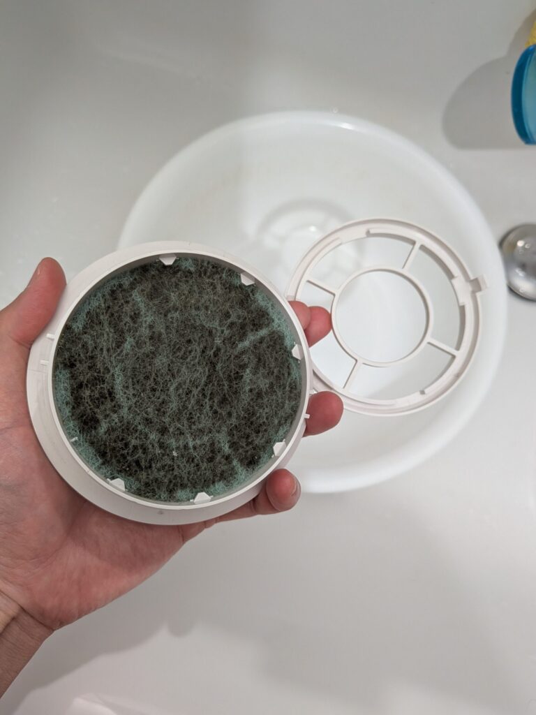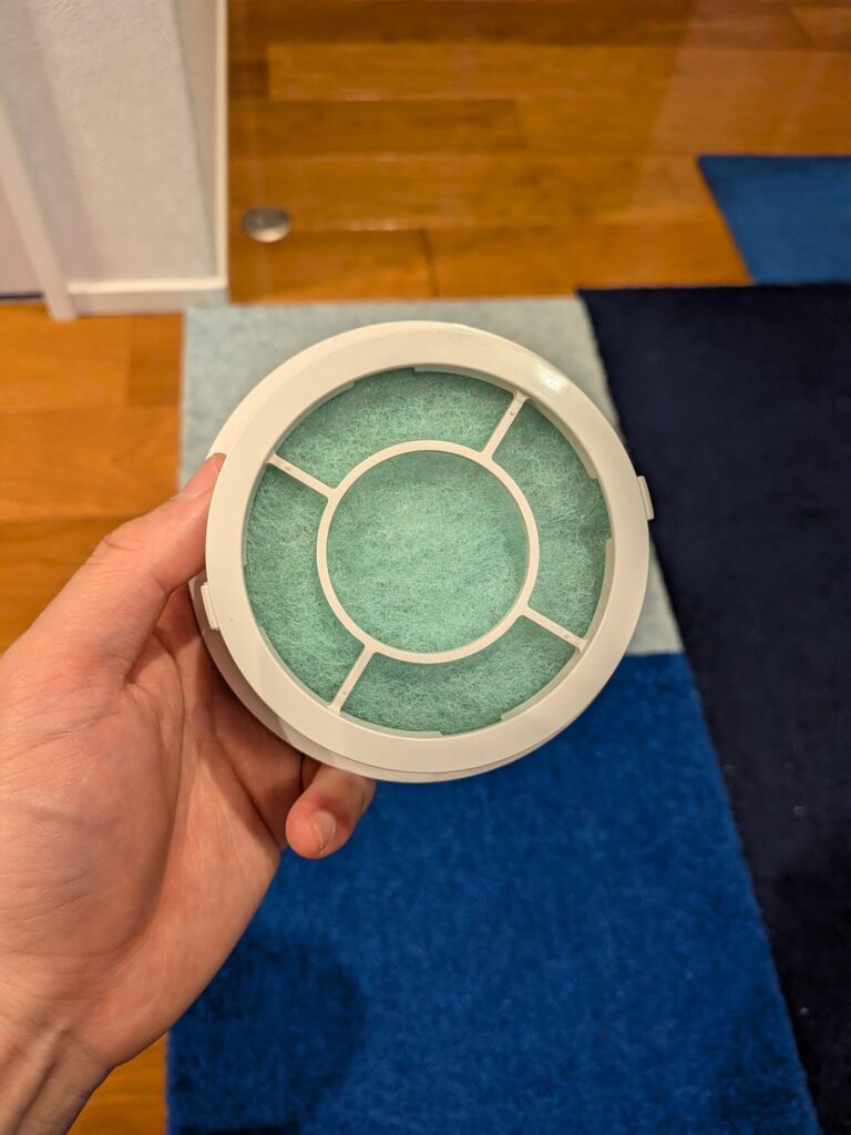 フィルター部分を反時計回りに90度ほど回転させると、手前に引っ張り出して取り外すことができます。