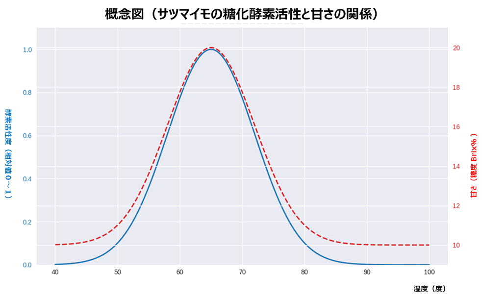 • 加熱によって酵素が活性化し、甘さのピークが引き出される